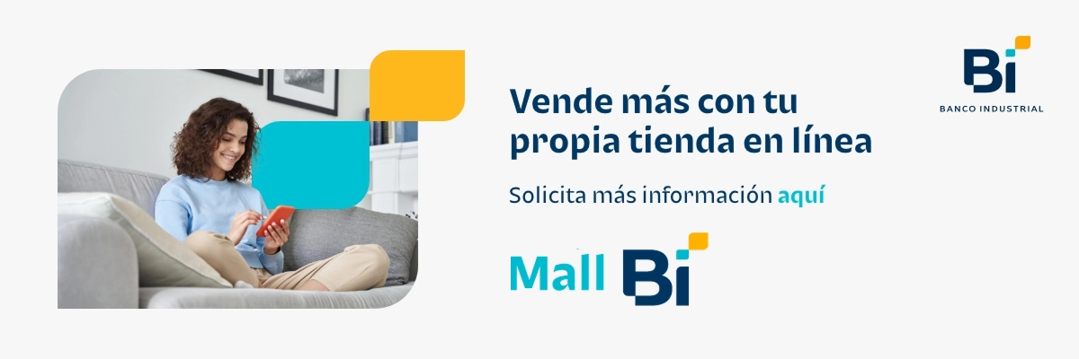 Con Mall Bi de Banco Industrial podrás crear tu tienda virtual de manera fácil, rápida y segura. Somos tu aliado para vender tus productos o servicios en línea. Si deseas más información, haz clic en la imagen de abajo y un asesor te brindará más información.